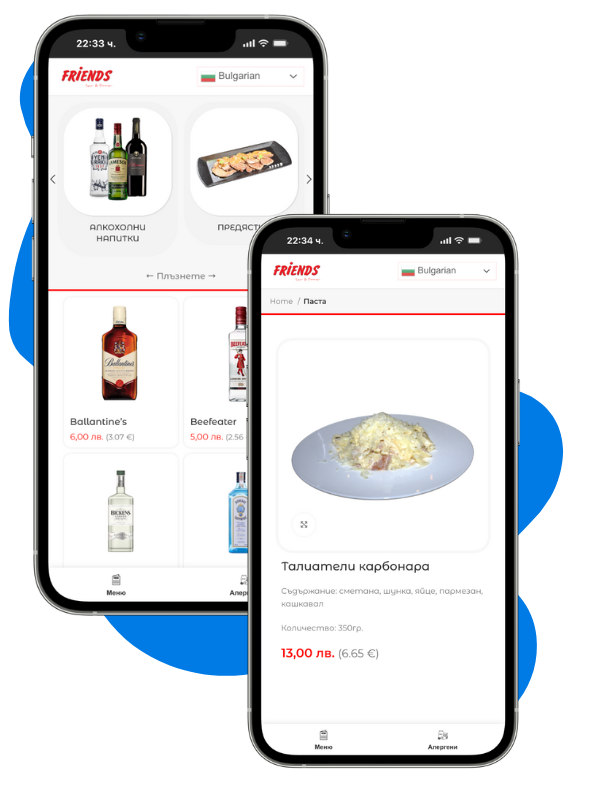 Нашето дигитално меню на SuperMenu.BG осигурява най-доброто съотношение между цена и качество, с акцент върху лесната навигация и бързината на поръчките. Със своя модерен дизайн, платформата ни прави избора и поръчването на ястия лесно и приятно. Доверете се на SuperMenu.BG за безупречно изживяване при всяка поръчка.